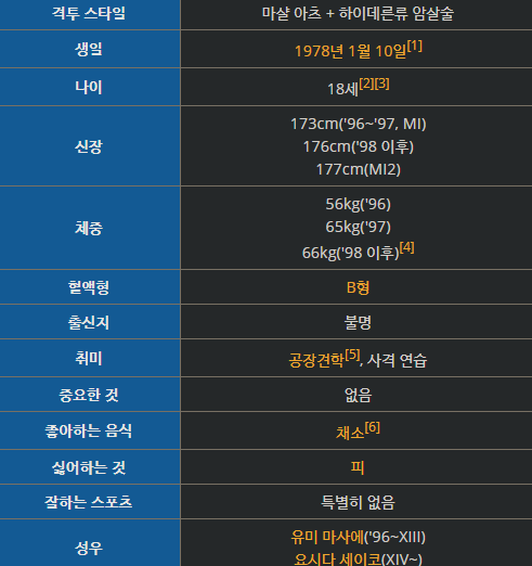 레오나 하이데른의 기본스펙입니다. 등장하는 시리즈에따라 조금씩 성장하는 캐릭터의 모습을 보여주는데요. 이번 XV에서의 모습은 어떨지?