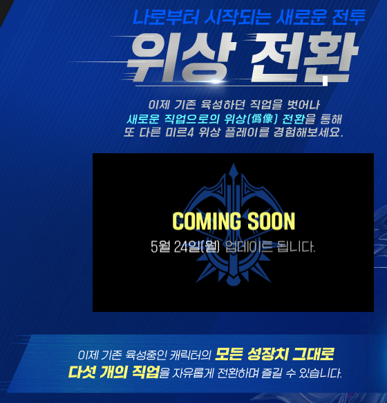 기존 유저들은 위상전환을 통해 다섯가지 직업으로 '모든 성장치' 그대로 자유롭게 전환하실수있습니다.