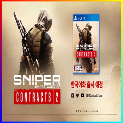 시리즈 누계 판매량 1,100만장의 슈팅 게임 시리즈 최신작 '스나이퍼 고스트 워리어 컨트랙트 2' PC, PS4 한국어판 6월 4일 정식 출시 예정! 중동 지역을 무대로 활약하는 저격수가 되어 범죄 조직을 제거하는 임무에 참여하세요. 상호 작용과 위치 선점이 자유로운 5가지의 다양한 샌드박스 맵에서 다양한 저격 미션을 즐길 수 있습니다. 시리즈 최초로 1,000미터 이상의 장거리 저격이 구현되었습니다. 또한 전작에 비해 더욱 영리해진 적들이 플레이어를 압박할 것입니다. 스나이퍼 고스트 워리어 컨트랙트 2 한국어판은 추후 PS5로도 정식 출시될 예정이며, PS4 소유자는 PS5로 무료 업그레이드가 가능합니다.