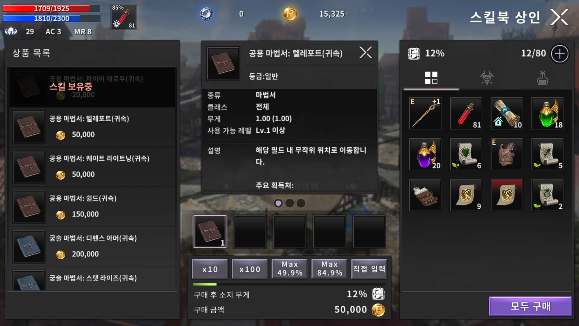 마법상인에게서 스킬을 구매할수도있습니다.