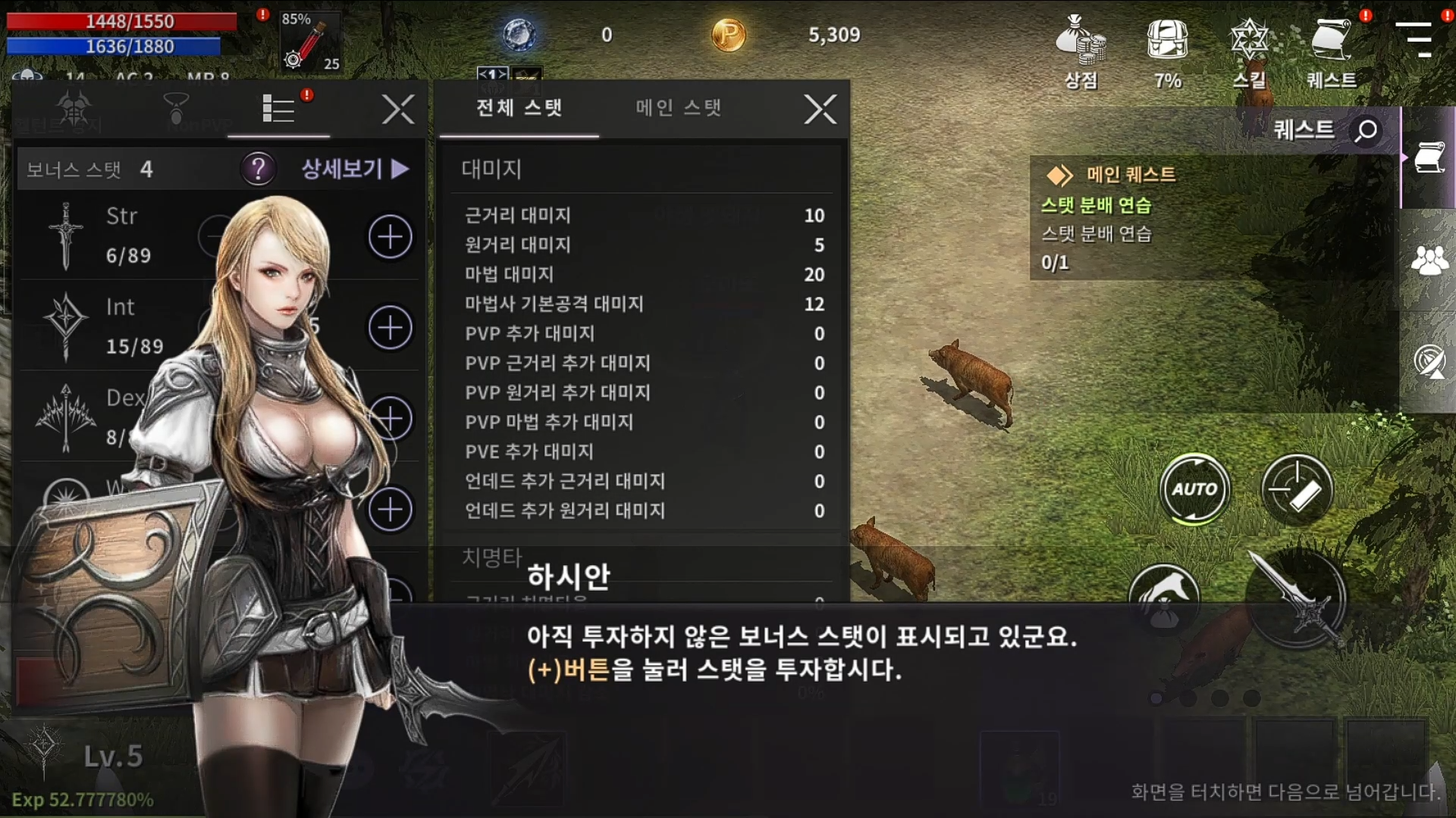 레벨업할때마다 주어지는 스텟을 투자해서 캐릭터를 강화할수있습니다. 이것또한 리니지M에서 보던것과 동일하네요.