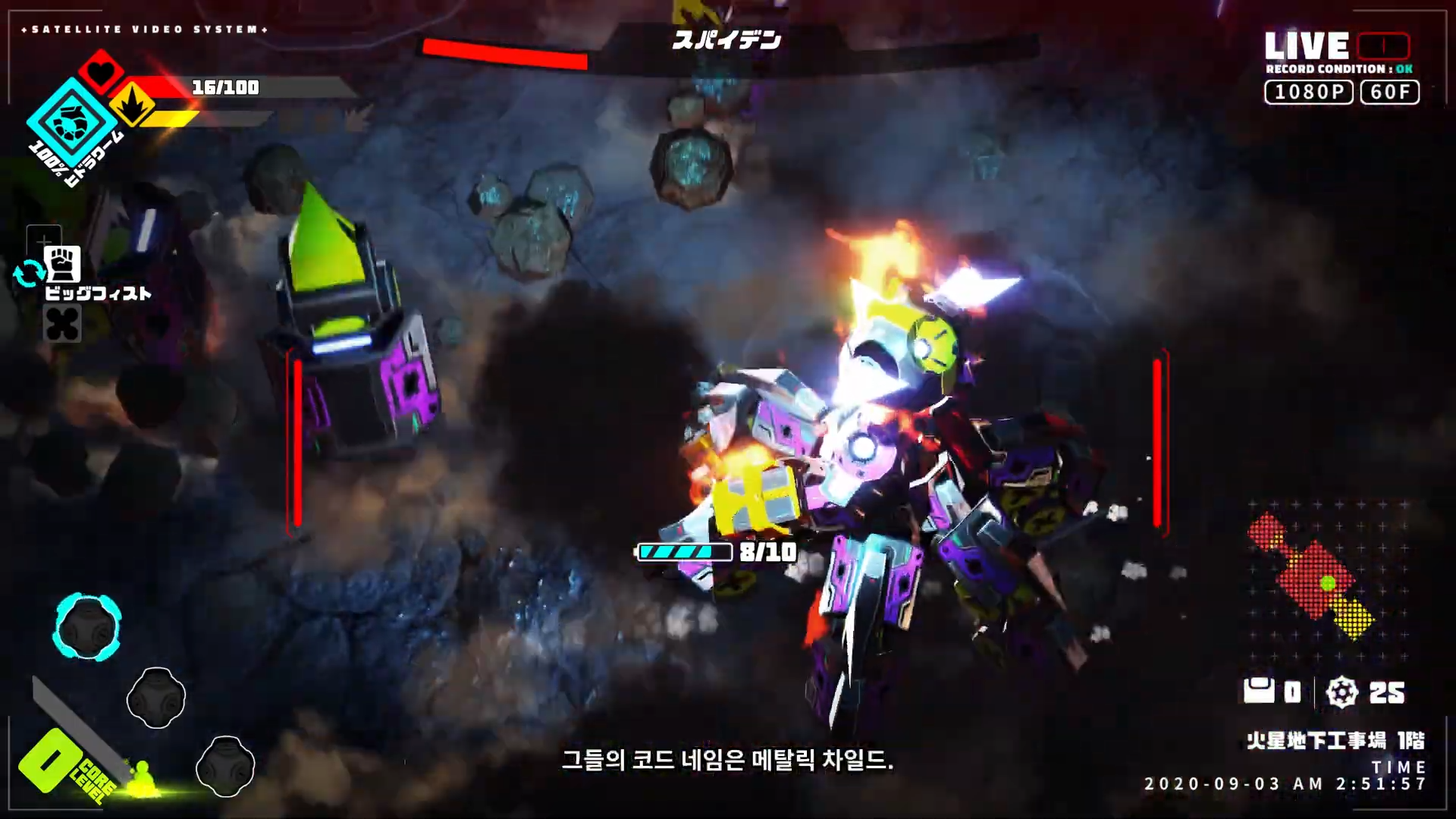 잡고 던지고 부수는 로그 라이트 코어 액션!! 우주선 라이프 스트림호 내에서 발생한 대규모 반란. 안드로이드 소녀 《메탈릭 차일드》 로나는 자신을 만들어준 아이린 박사의 반란을 막기 위해, 당신의 조종하에 거대한 적 로봇들에 맞서 싸운다.