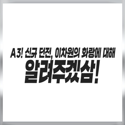 A3, 그거 아삼? 7월 업데이트 공개! 최고 난이도를 자랑하는 PvE컨텐츠 '이차원의 화랑' 오픈! 이차원의 화랑을 통해 획득한 '유물'로 유물 장비를 제작해보세요. 슈 신화 각성 등 추가 업데이트 내용도 지금 바로 게임안에서 확인할 수 있습니다!