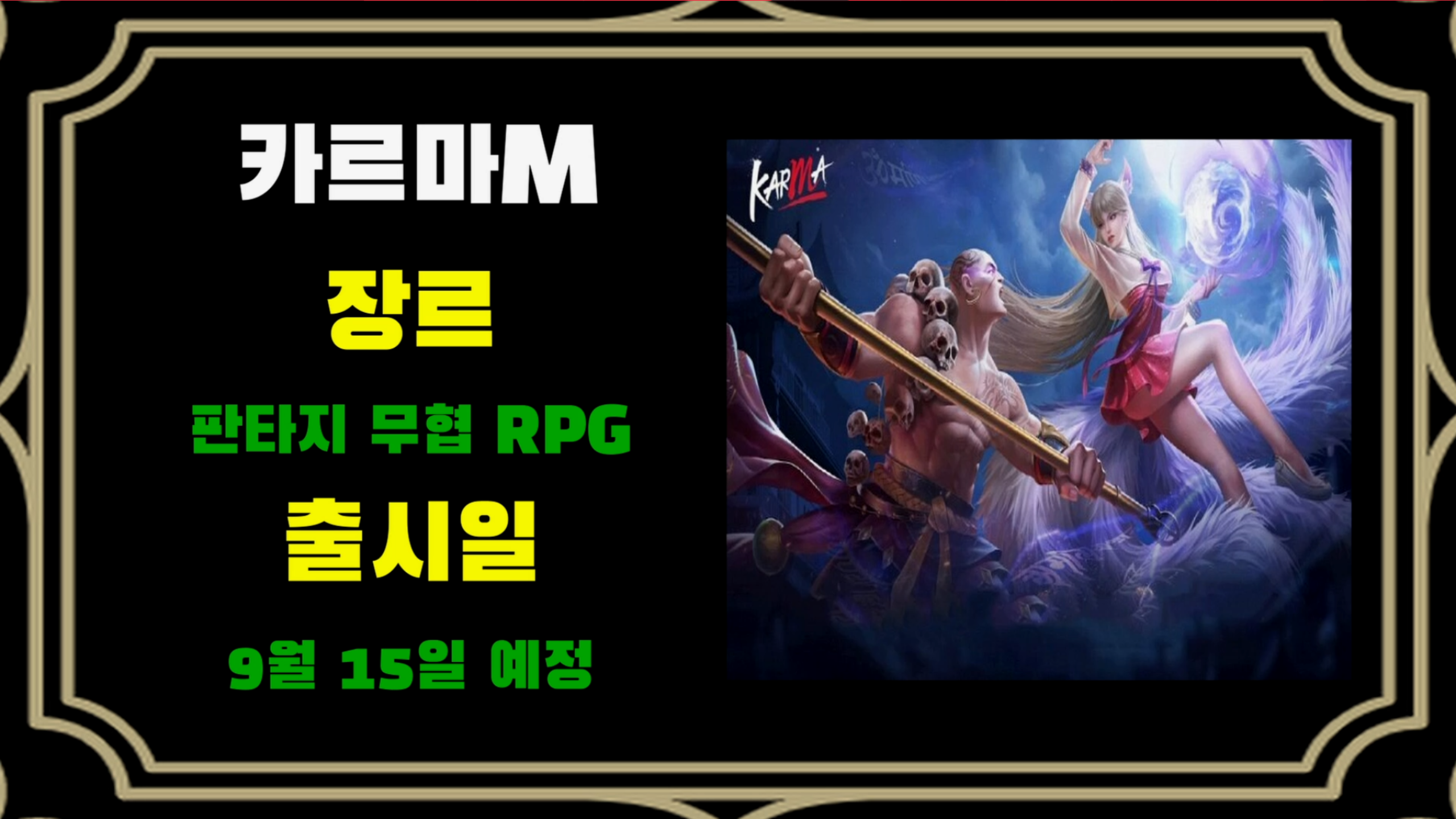 사전등록 진행중인 무협 모바일게임 신작 카르마M의 게임정보와 사전등록보상 진행중이벤트에대해 영상을통해 알아보도록하겠습니다. 오픈은 9월15일로 예정되어있네요. 아직 사전등록 진행중이니 참여해보세요~