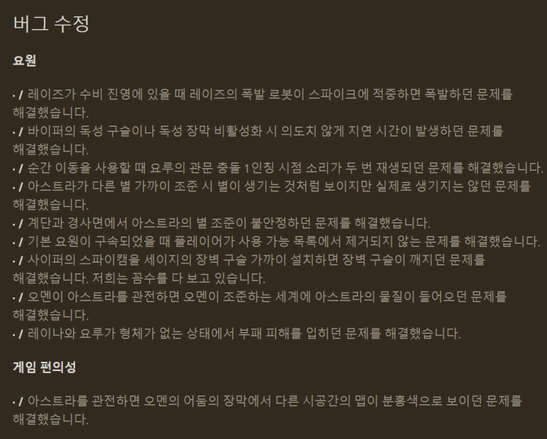 각종 버그도 수정되었고