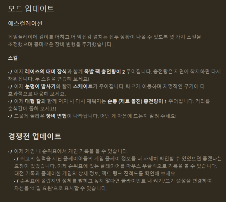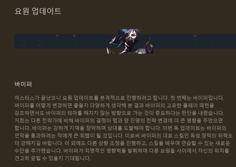 바이퍼 요원의 업데이트!