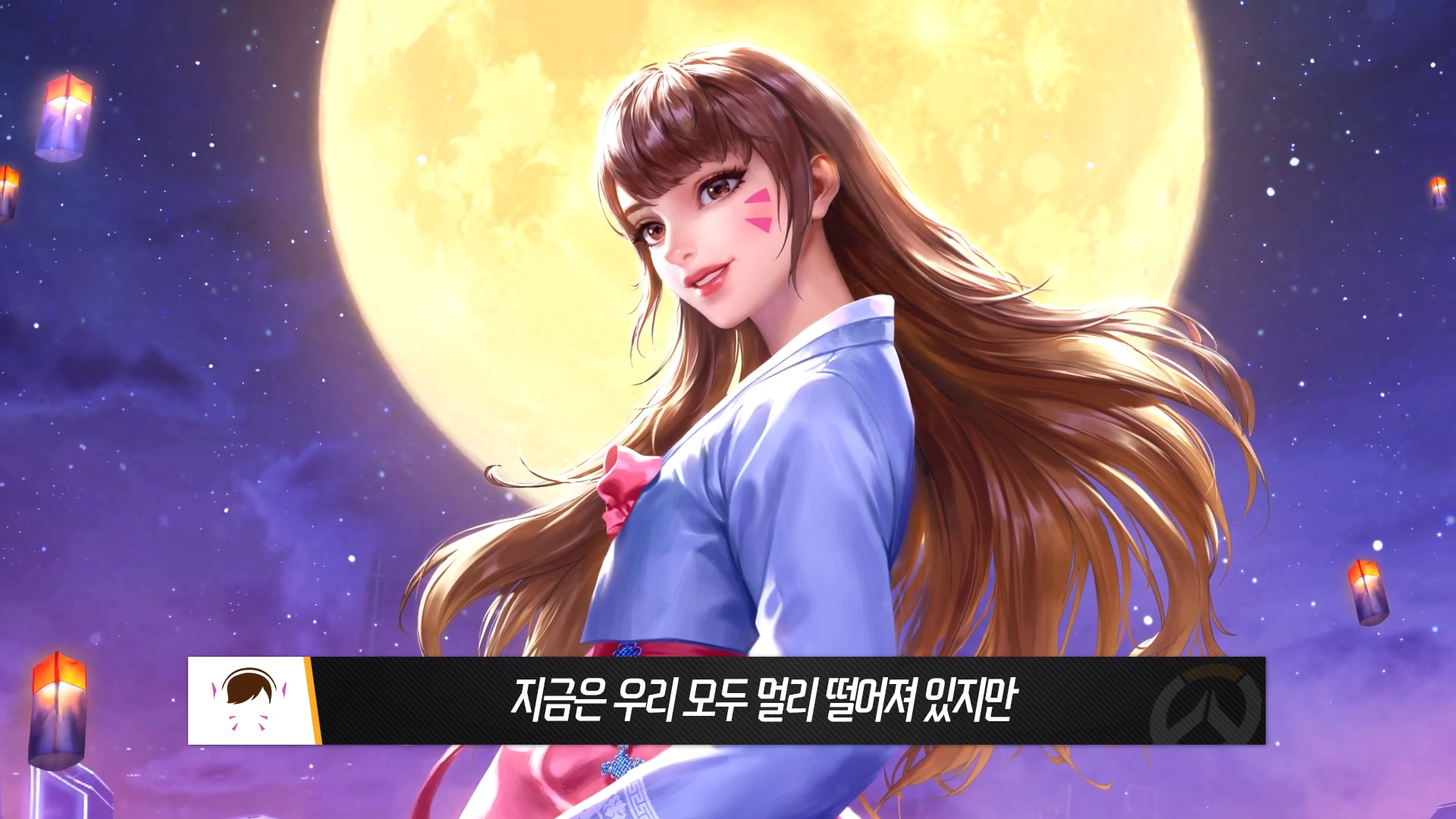 부산 전장을 모티브로 한 전통과 발전이 어우러진 한국의 모습, 그리고 가을밤 하늘을 수놓는 은은한 청사초롱 아래 고운 한복의 자태를 뽐내고 있는 D.Va를 일러스트와 영상으로 표현하였습니다. 어둠을 밝히는 보름달 같은 D.Va의 명절 인사와 함께 이번 추석도 풍요롭게 보내세요!