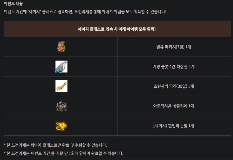 세이지 레벨업 달성 이벤트를 4월28일까지 진행하구있구요