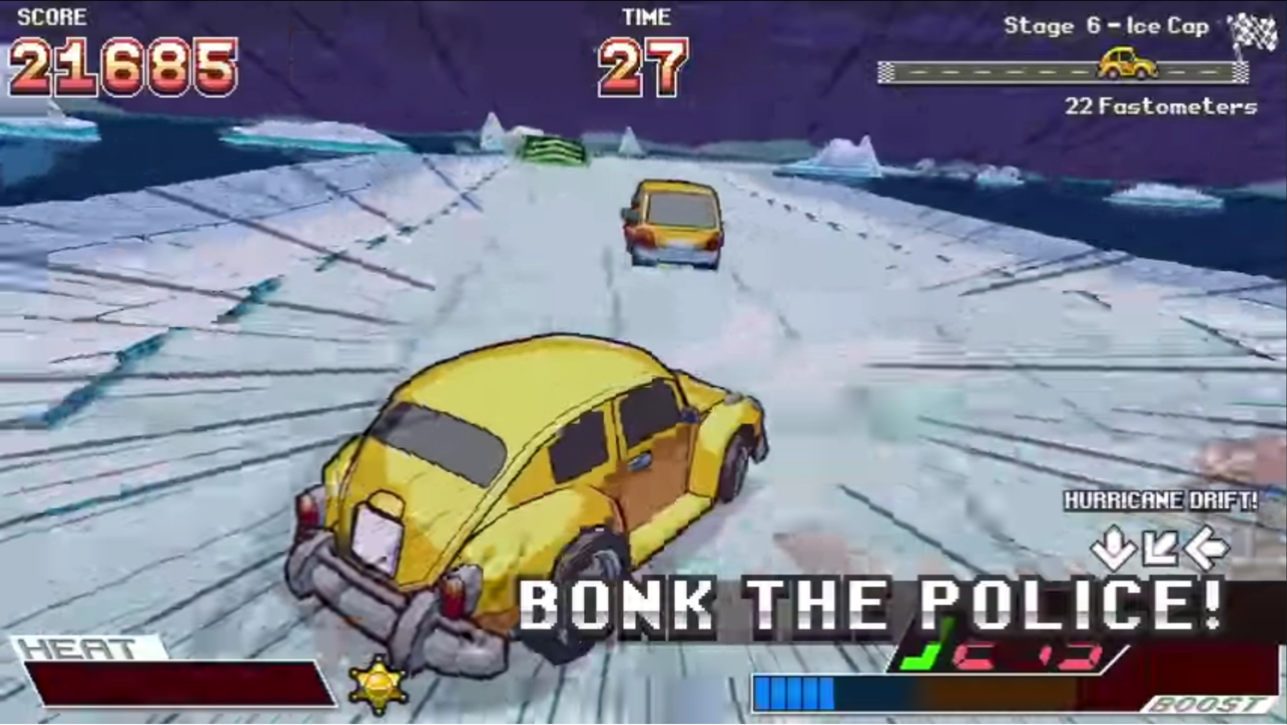 - 아케이드 클래식에서 영감을 받은 끝없는 운전 게임, 현실감에 맞서 총격을 가하는 단순하면서도 강렬한 게임 플레이. 그리고 비장도 걷어차!
