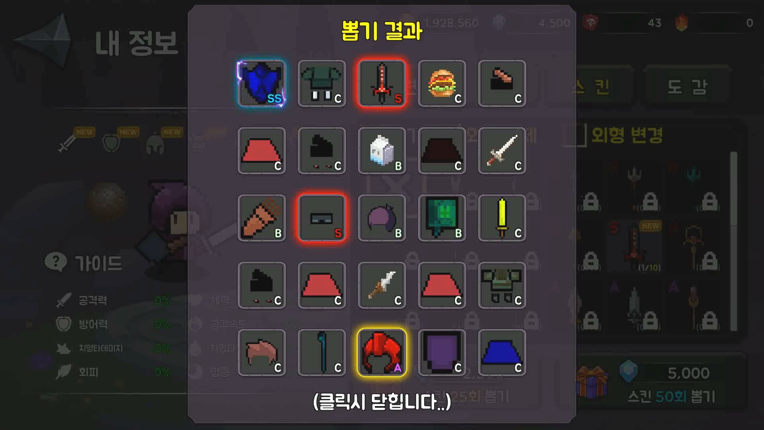 스킨뽑기를 통해 외형변경도하고 능력도 강화할수있습니다.
