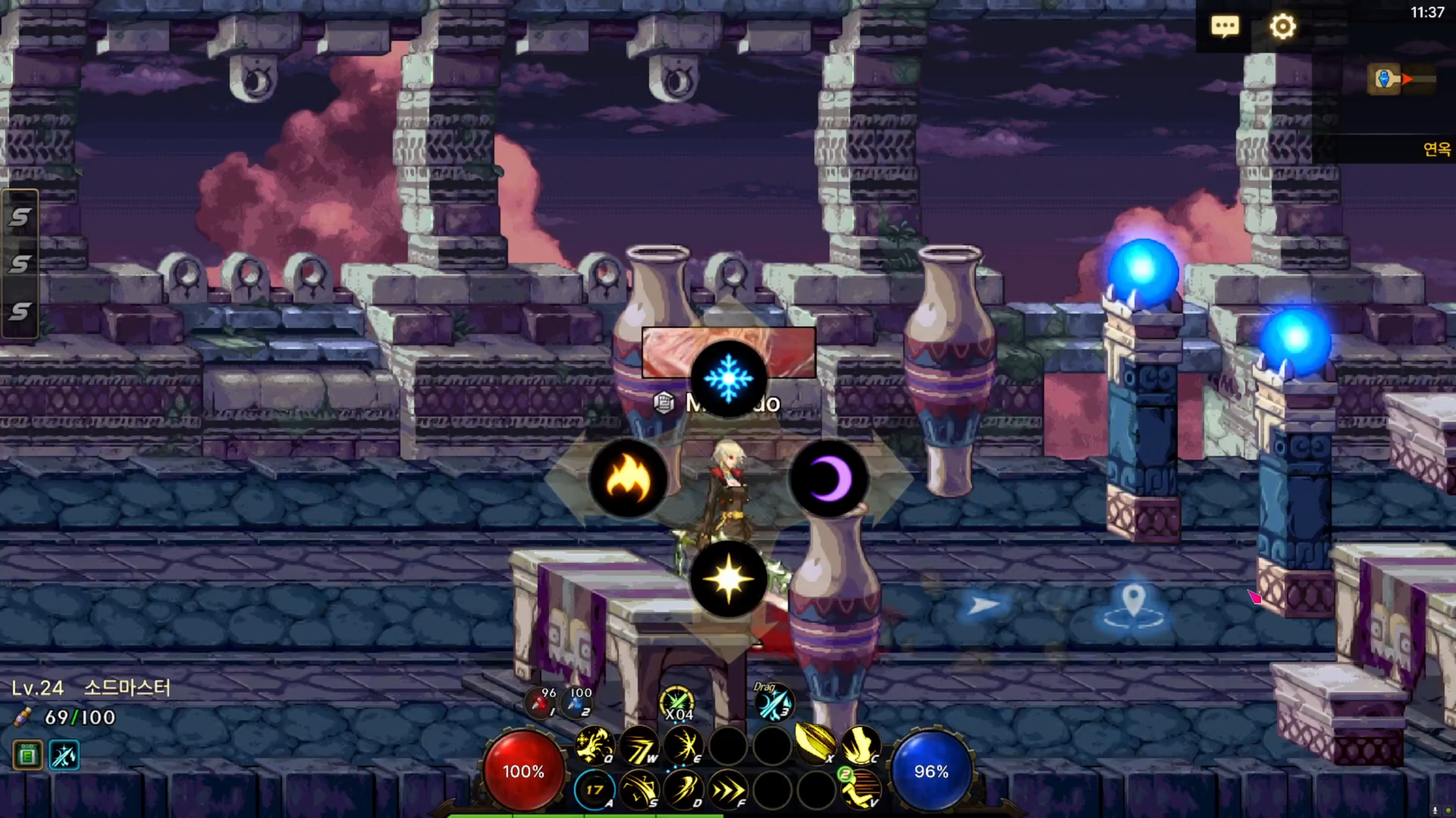 불,물,빛,암 4속성중 필요한 속성을 선택해서 던전을 진행하시면되고 각 속성별로 다른 효과를 가진 스킬을 사용할수있습니다. 속성별로 바꿔가며 사냥하면 지루함이 덜해지는느낌?