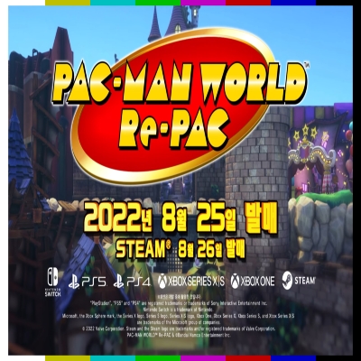 1999년 발매 한 3D 액션 어드벤처 게임 ‘PAC-MAN WORLD 20th Anniversary’를 풀 리메이크되어 Nintendo Switch™, PlayStation®5, PlayStation®4, Xbox Series X|S, Xbox One, STEAM®용으로 등장! ※STEAM®용은 26일 발매됩니다.